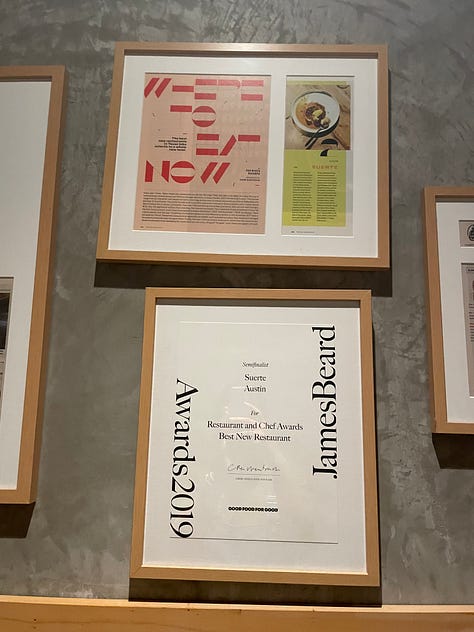 Suerte for their homemade tacos. I still think about the first time I had their suadero tacos with confit wagyu brisket, black magic oil, avocado crudo, onion and cilantro.